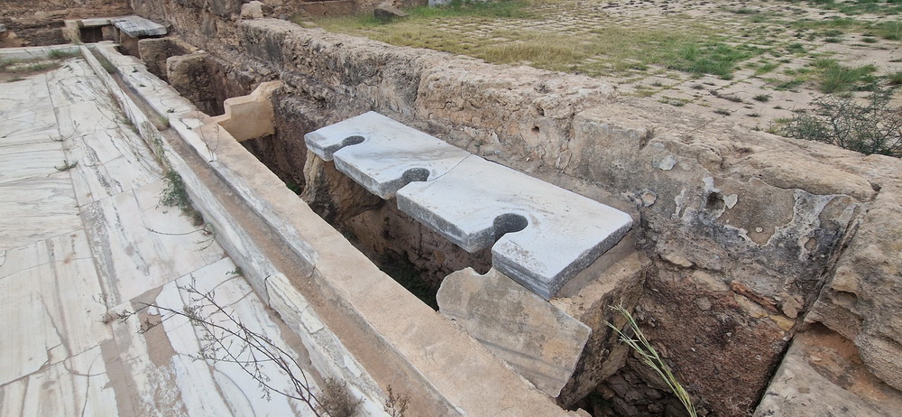 Tu su hramovi, vile, amfiteatri, pijace i javna kupatila sa sačuvanim antičkim toaletima u kojima su posetioci sedeli jedan do drugog vršeći nuždu, bez pregrade koja bi omogućavala diskreciju, što je doduše bila praksa i na francuskim dvorovima do kraja 18. veka.