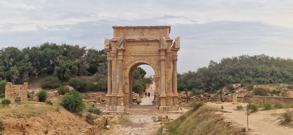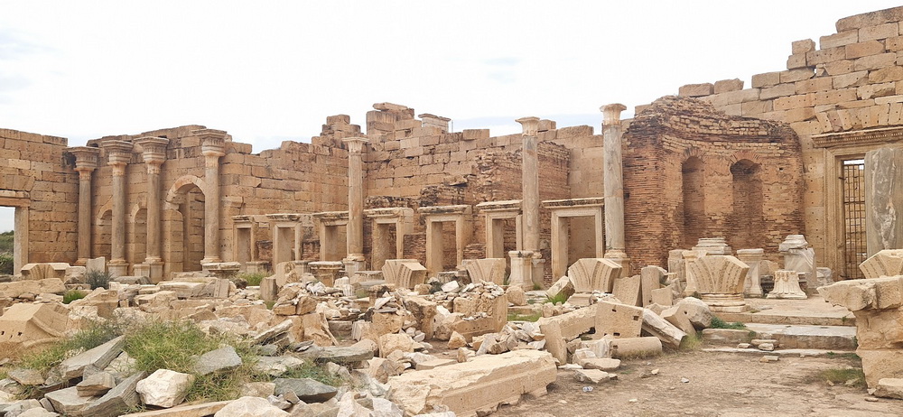 Rušen je u ratovima, zemljotresima i cunamiju, ležao pod peskom više od jednog milenijuma, njegove delove Englezi odneli u British Museum, otkopali ga Musolinijevi arheolozi a njemu su se tokom Libijske revolucije 2011. krile Gadafijeve snage sigurne da NATO neće bombardovati Uneskovu svetsku baštinu. Leptis Magna.